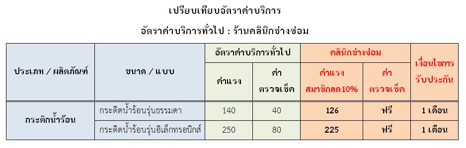 สินค้า ใน ซ่อมกระติกน้ำร้อน/กาต้มน้ำร้อน (27 ชนิด)